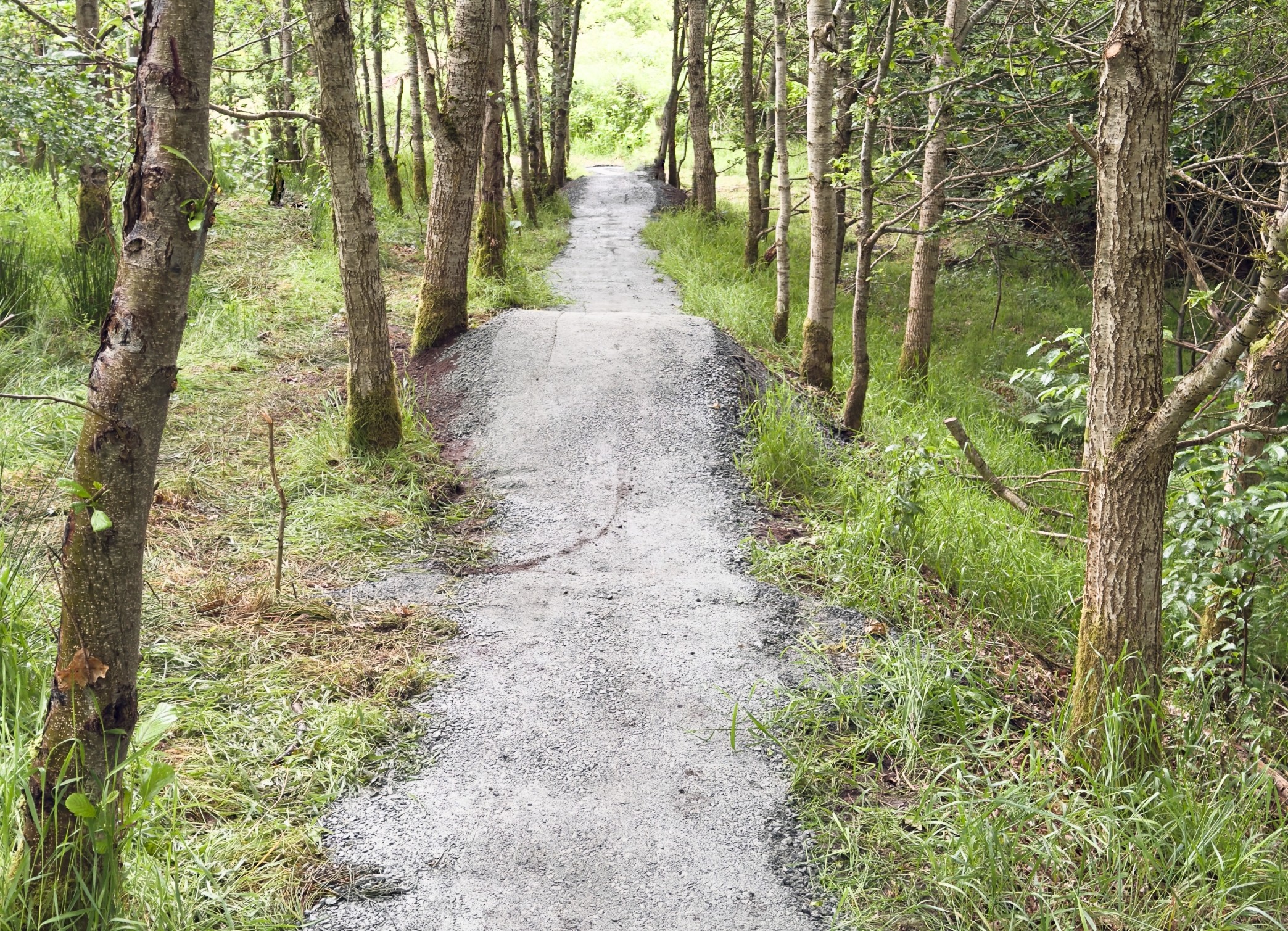 En bakke over et væltet træ, efterfulgt at en lille bro.